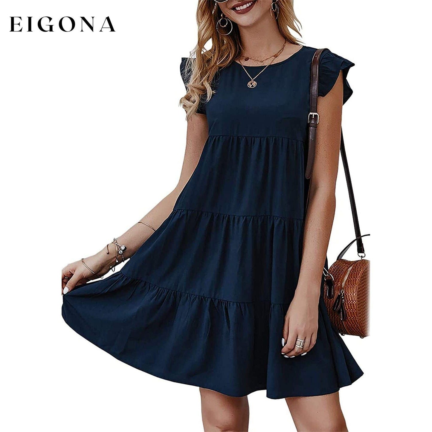 - Classic Cute Collar & Sleeves: Wear this babydoll dress in summer will show your elegance. Women's casual dresses, cute flared sleeves and ruffle hem, rear keyhole seal, and the lotus leaf sleeve hem make it a perfect summer outfit.