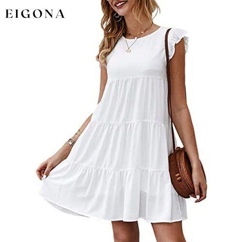 - Summer dresses for women 2023/ casual dresses for women/ women mini dress/ beach dresses for women/ babydoll dress/ sun dress/ sleeveless dress/ spring dresses/ loose dress/ flowy dresses/teen dresses/ maternity dress/ knee length dress/ solid color dress/ cap sleeve/ ruffle sleeve and armhole hem/ round neck/ White dresses, so relaxed feeling.