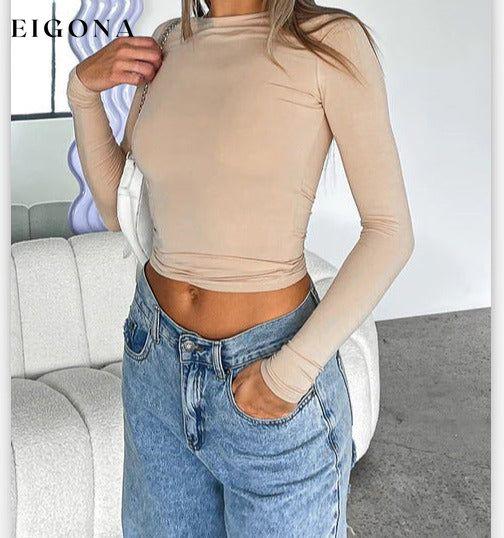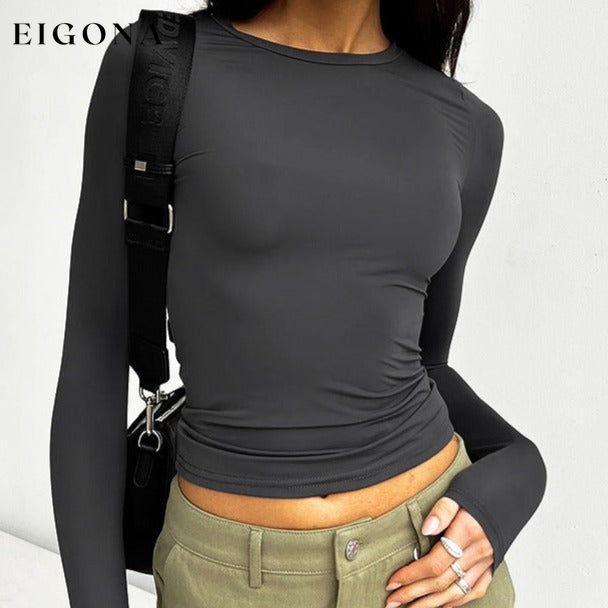 Women's Top, round neck slim long sleeve solid color long sleeve t-shirt