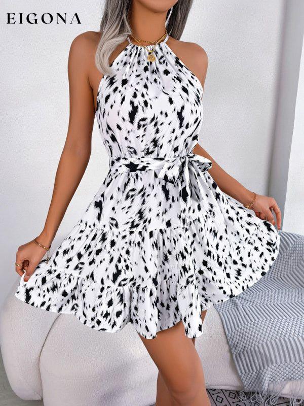 Women's Woven Casual Fashion Halter Neck Leopard Print A Swing Dress