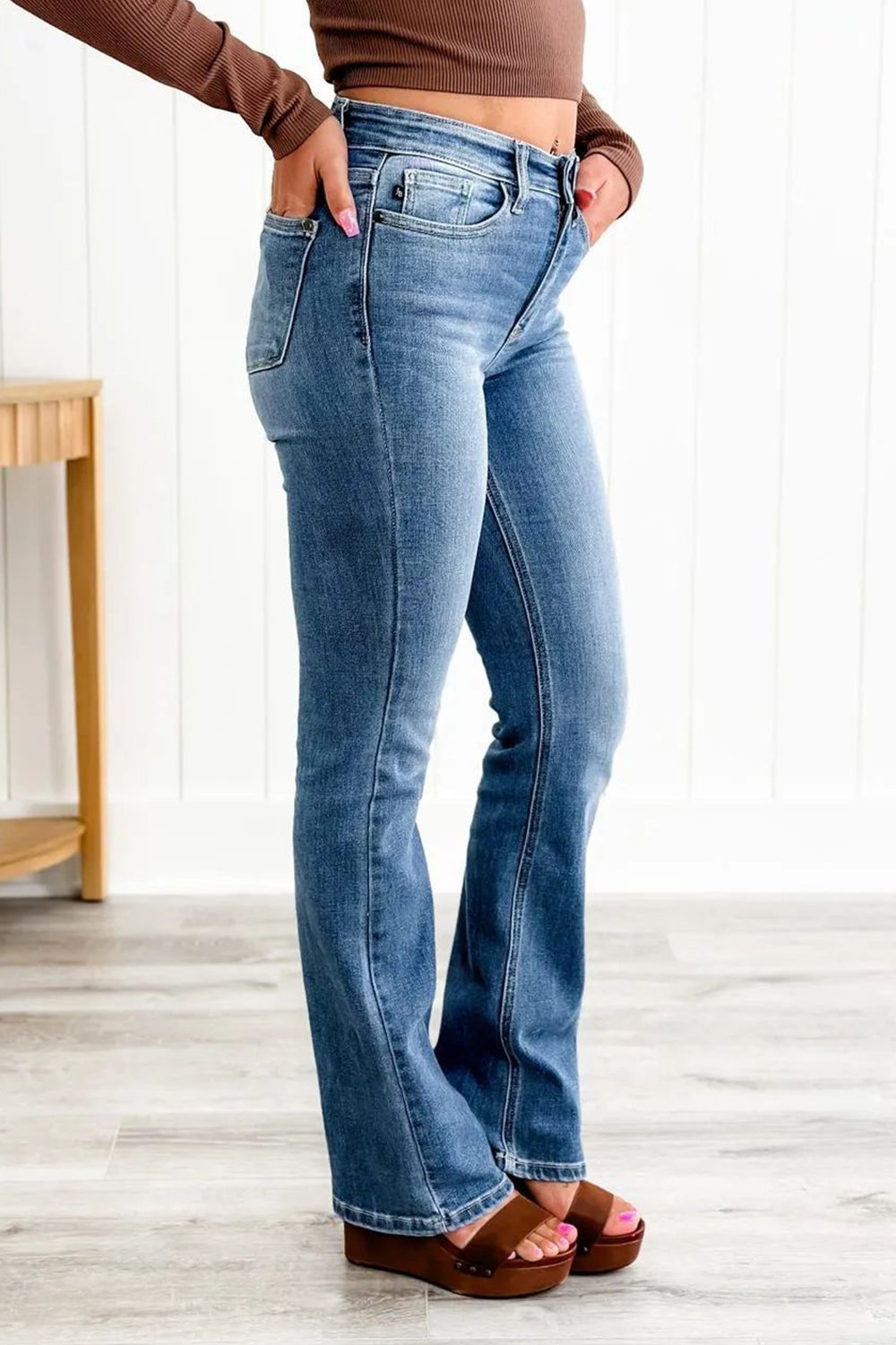 Bring the measuring tape around your hips and measure around the fullest part of your bottom