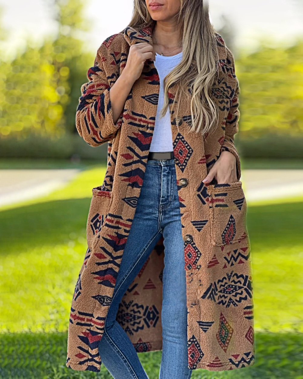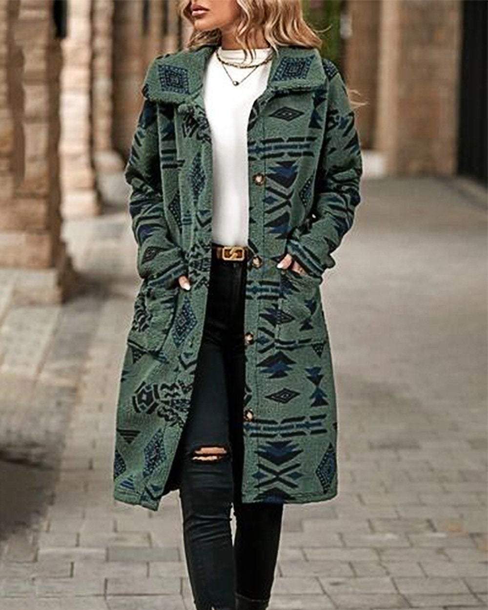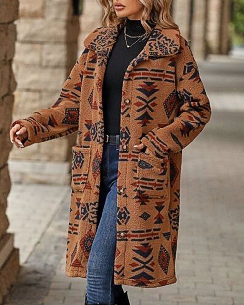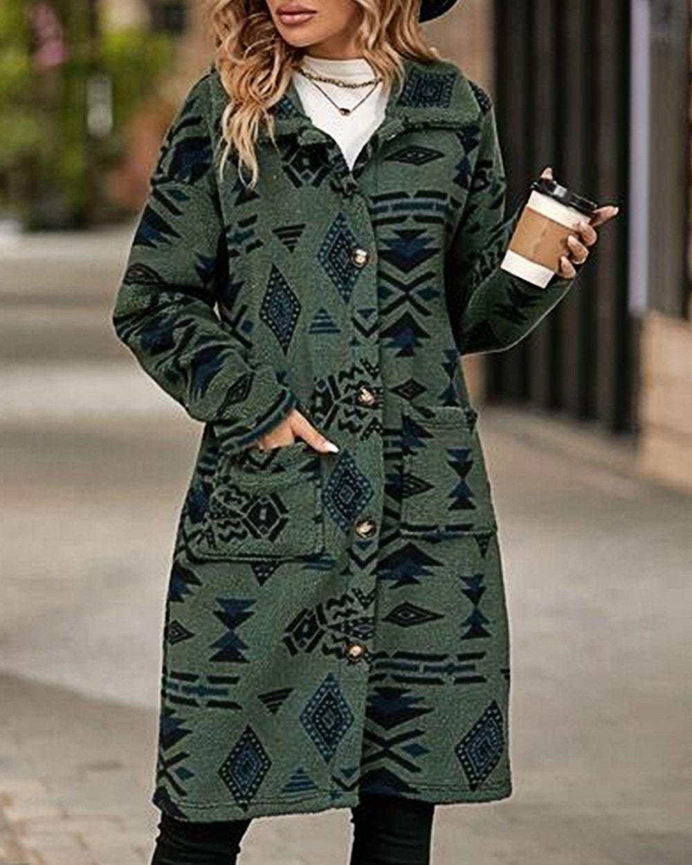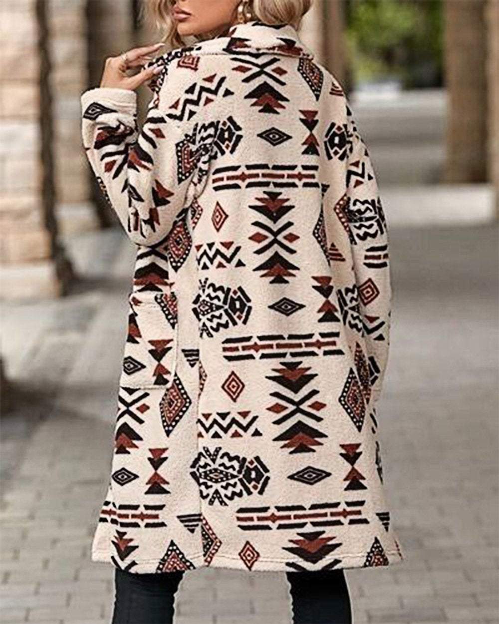 Women's Western Retro Print Long Sleeve Coat