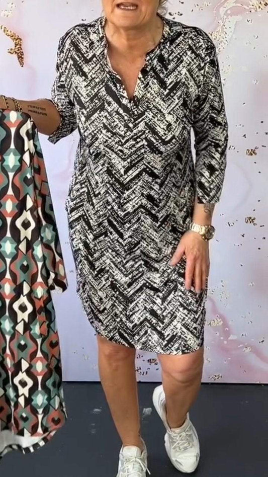 Women's V-neck Long-sleeved Zebra Print Slim Dress