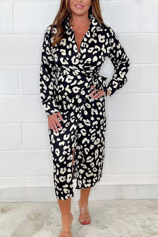 Women's V-neck Long-sleeved Leopard Print Two-piece Suit