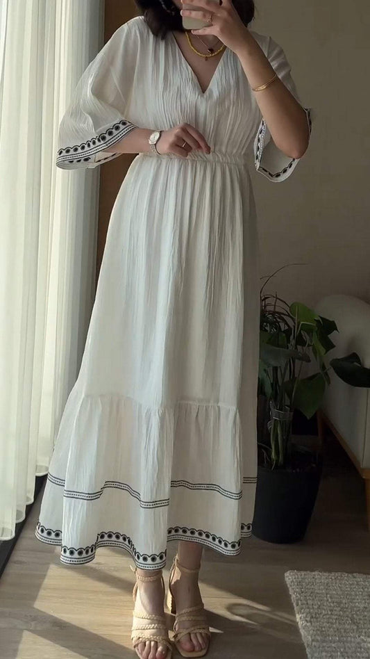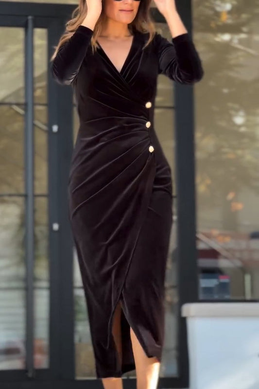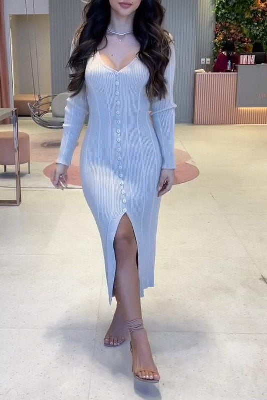 Women's V-neck Long-sleeved Knitted Tie-back Design Elegant Dress