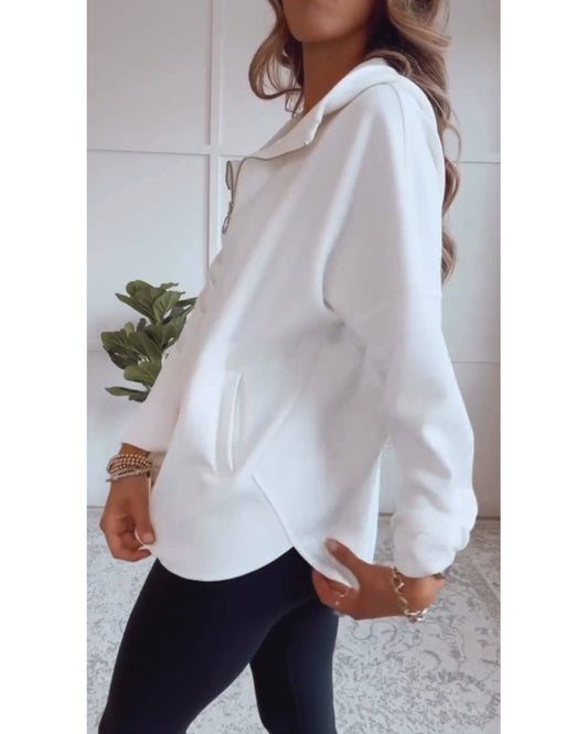 Vestido casual de cor sólida com bolso com zíper e gola redonda