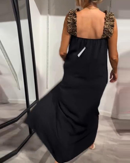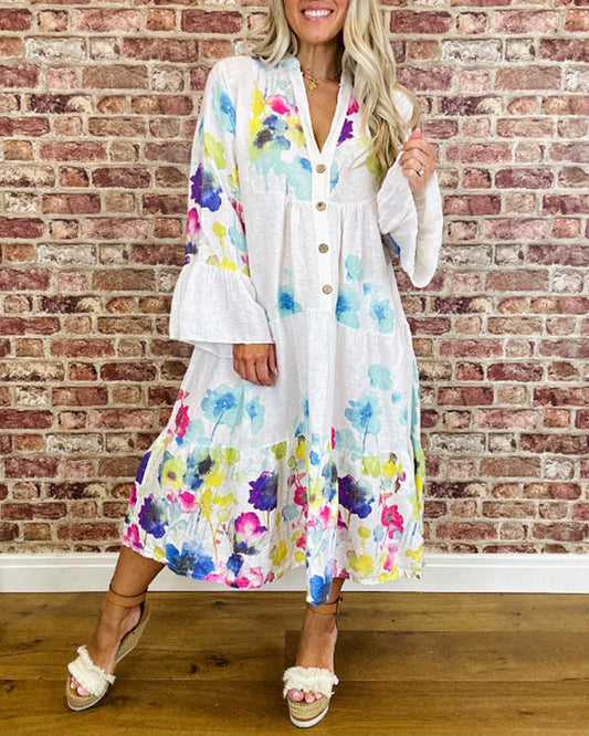 Em promoçãoVestido maxi de manga comprida com botão floral