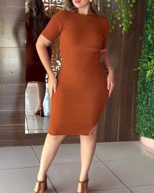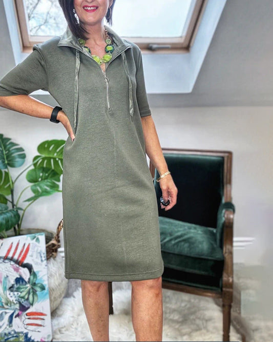 Vestido casual com capuz e bolso com fenda em cor sólida