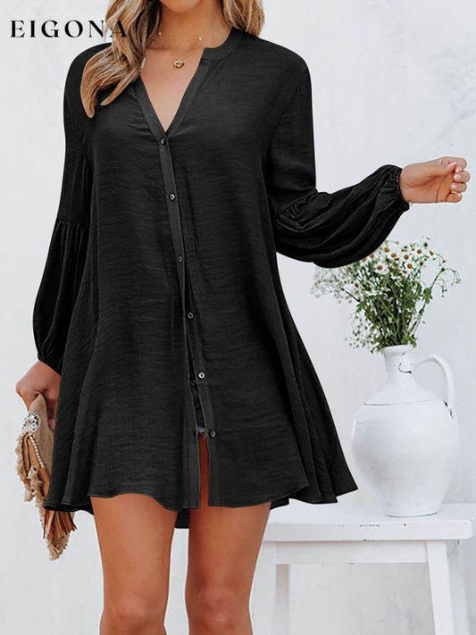 Vestido casual solto com costura e manga bufante com botão