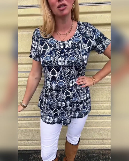 V-Neck Printed Short-Sleeved Casual T-Shirt