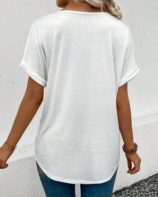 V-Neck Rolled-Hem Short-Sleeved Loose T-Shirt