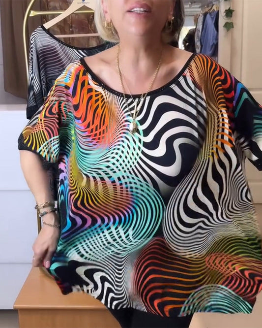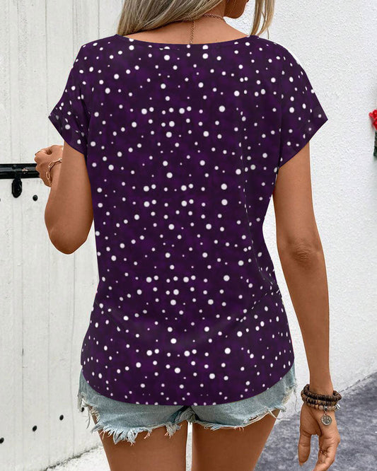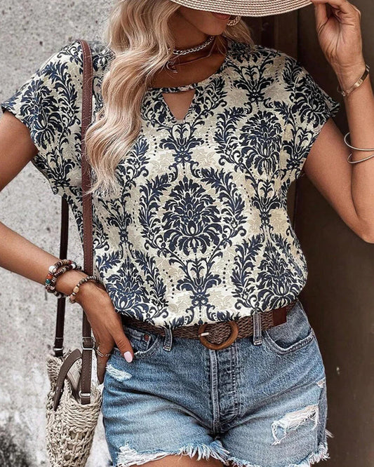 V-Neck Hollow Print Short-Sleeved T-Shirt
