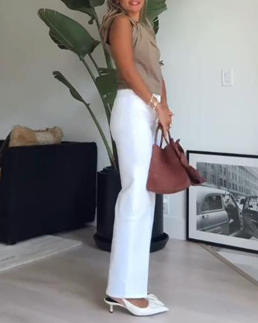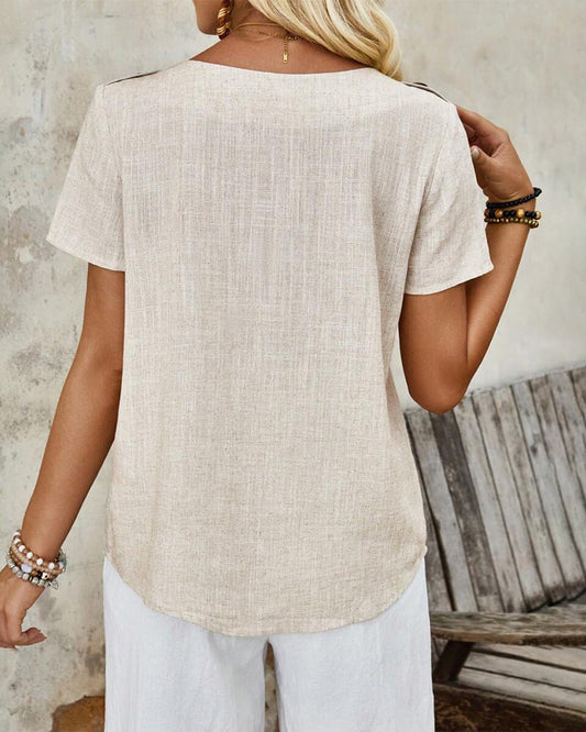 Round Neck Cotton And Linen Short-Sleeved T-Shirt