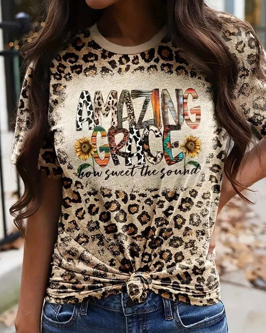 Vibrant Leopard & Graphic Print Crew Neck T-Shirt