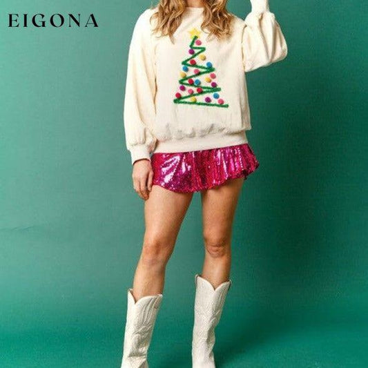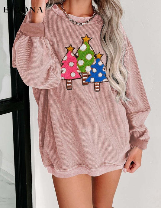 Moletom feminino de Natal com gola redonda bordada com árvore de Natal