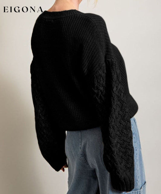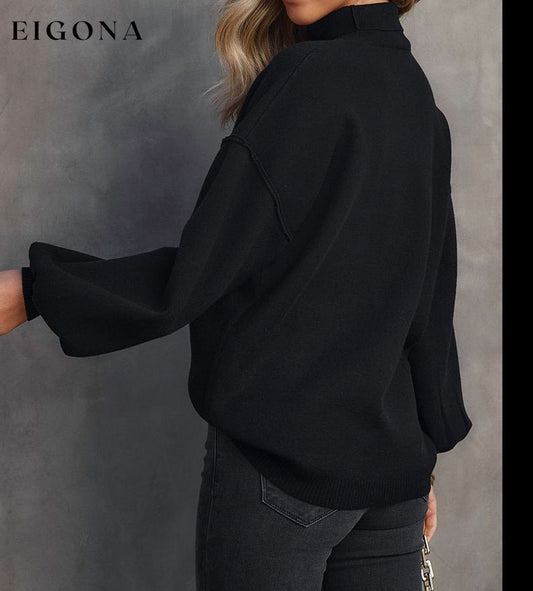 Suéter de malha preta com gola alta e ombro caído e manga bolha