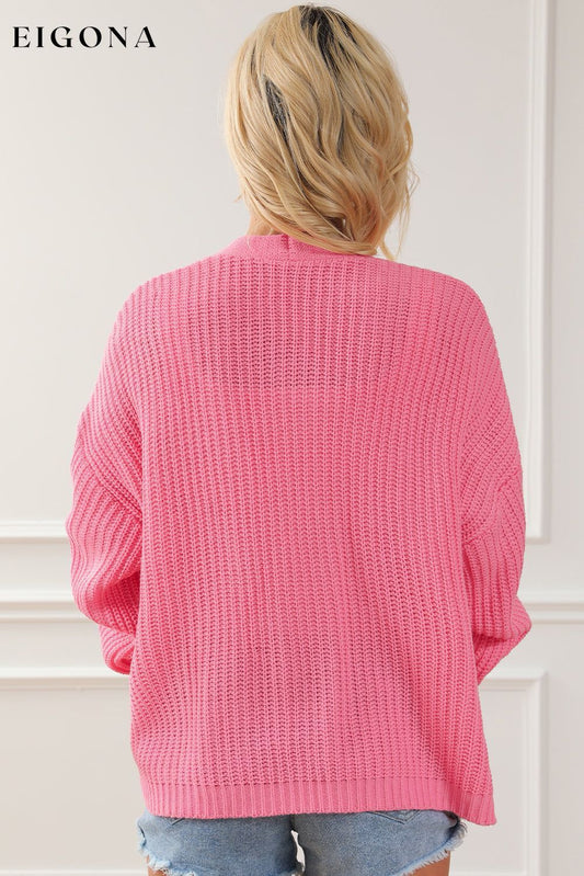 Cardigã Curto Aberto Rosa Sólido com Bolsos