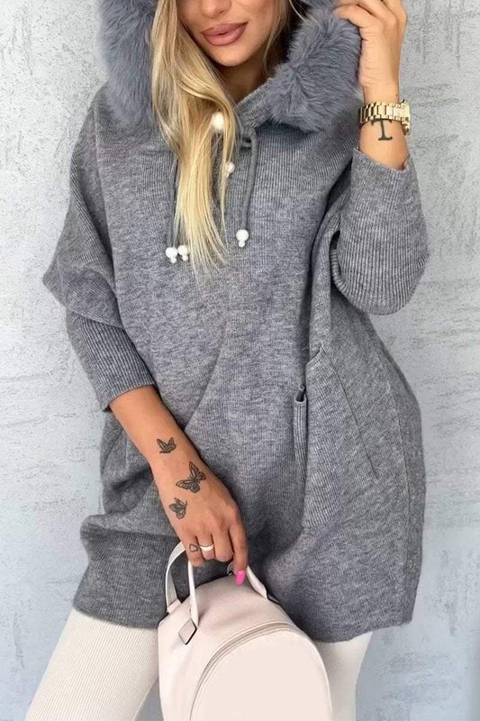 Women's Quilted / Knit Faux Fur Collar Zip Pocket Jacket